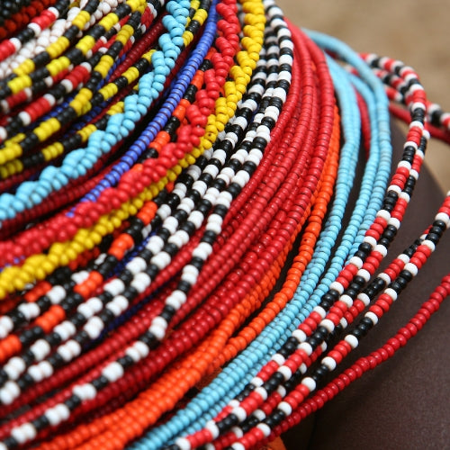 Our waist beads are handmade in Ghana by our local artisans, and by supporting us, you are supporting local Ghanaian artisans who specialize in artistic cultural beading.
