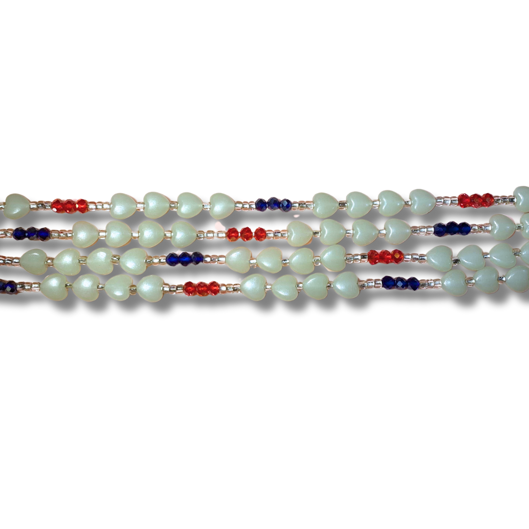 Come capture these luminous hearts ♥️ at night showcasing dazzling blue and red crystals, along with silver and glow-in-the-dark beads!