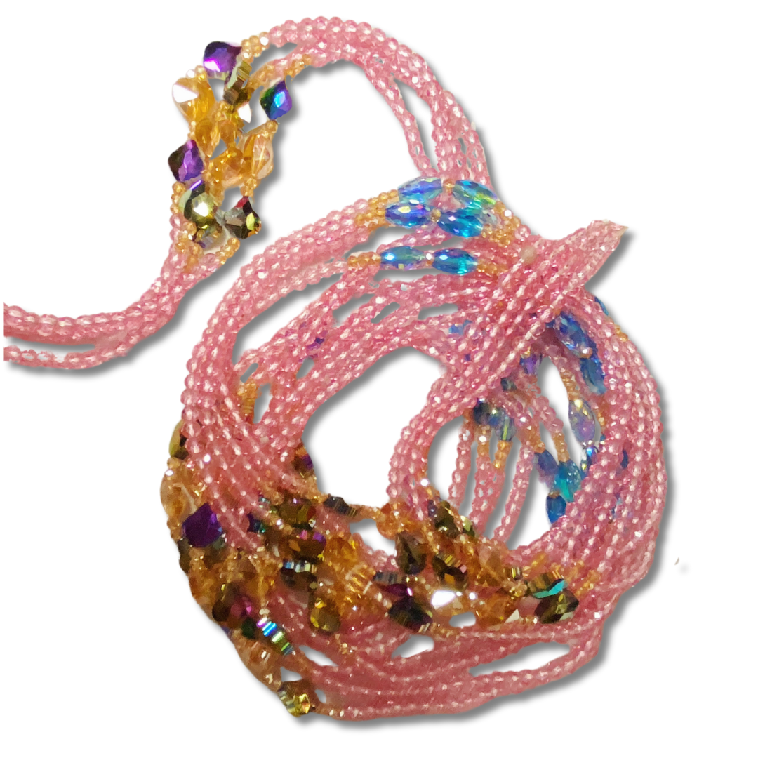 Indulge in the epitome of elegance with our exclusive collection designed for Pretty in Pink Glamour Girls! These glamorous and dainty waist beads, featuring bright pink crystals and charming gold hearts, are an irresistible must-have for those who embrace their inner glamour.