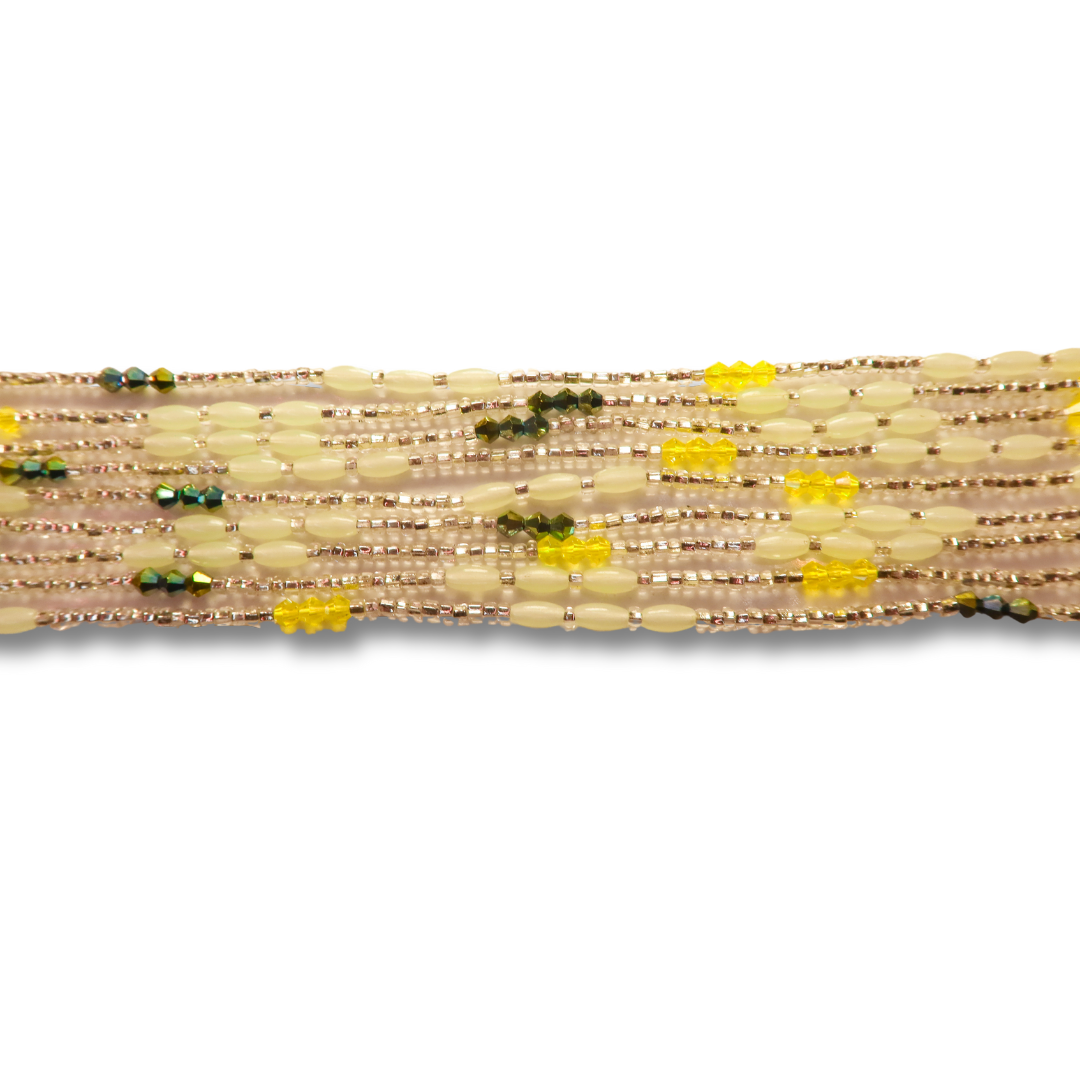 Elevate your waistline with the soothing beauty of our Green and Yellow Crystal Waist Beads. Enhanced with silver and a touch of nighttime essence with glow-in-the-dark beads, they effortlessly blend playful elegance into your everyday style
