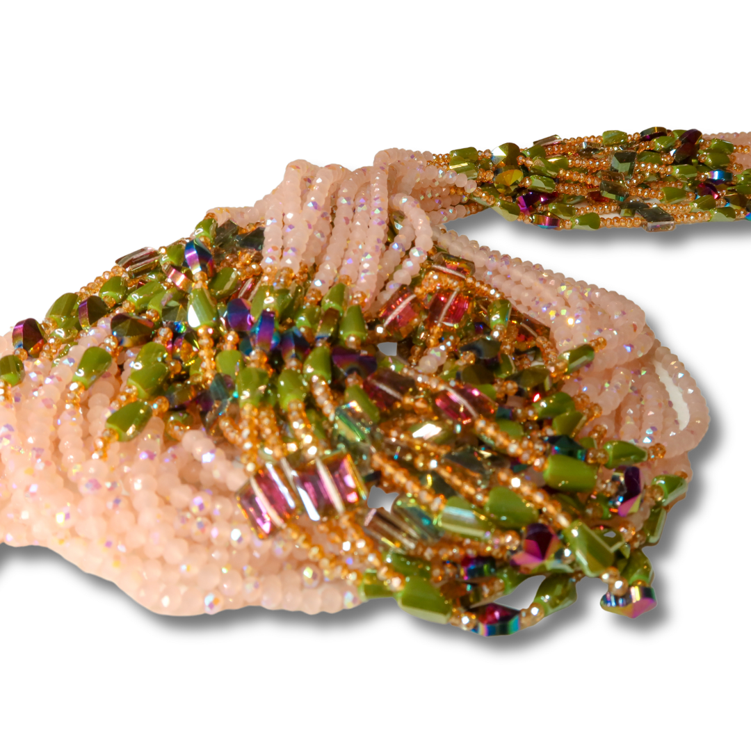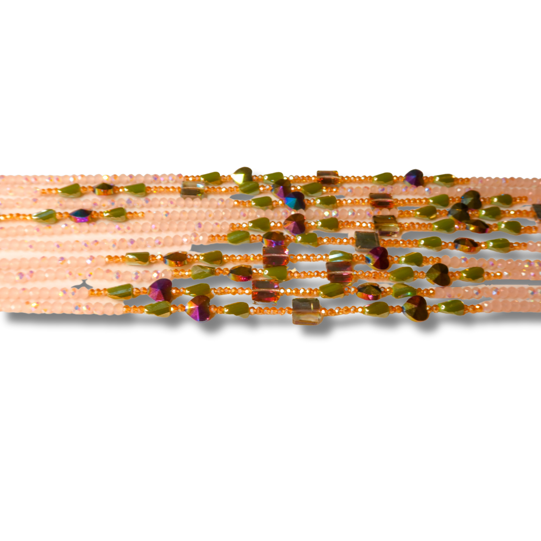 Bedazzle your waistline with Shakara! Our chrome pink waist beads feature iridescent hearts and green and gold accents for a totally glam look. Put it on for a subtle sparkle or stand out with a statement! Either way, you're sure to sparkle in style!